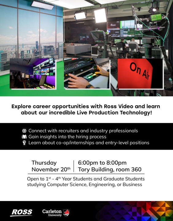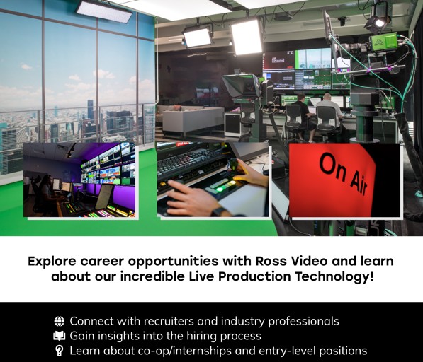 What you will get out of it: Learn about Ross Videos live production technology, meet and network with the recruitment team and hiring managers to learn about career opportunities.