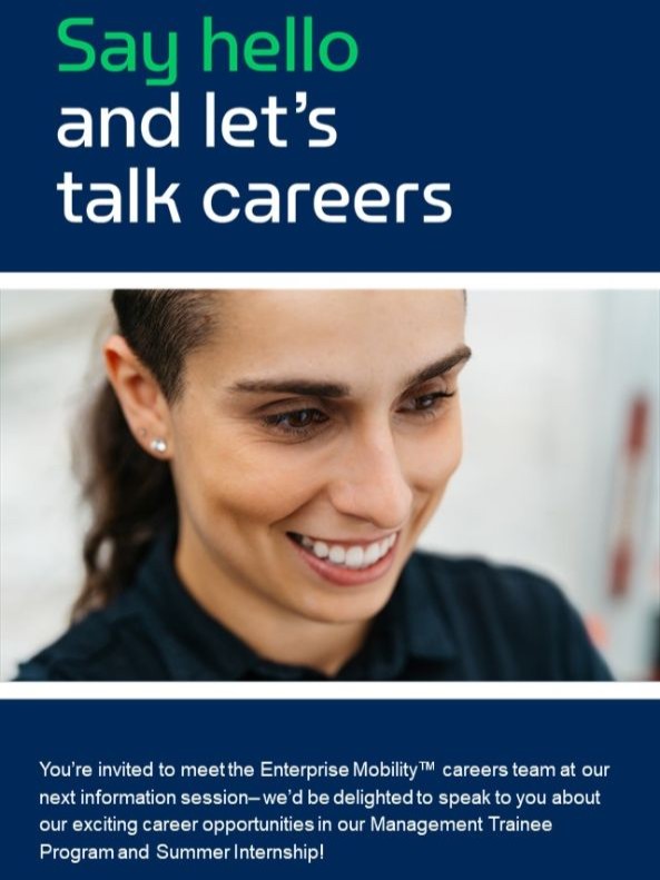 What you will get out of it: Meet and network with Enterprise Mobility's careers team and learn more about their employment opportunities, including their Summer Internships and Management Trainee Program